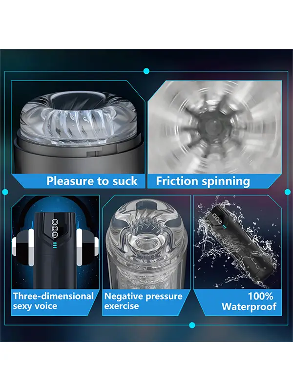 Bu erkek mastürbatörü, 7 dönüş modu ve 7 emme modunu bir arada sunar. İki fonksiyon ayrı ayrı kontrol edilir ancak birlikte çalışır; dönüş fonksiyonu, 3 boyutlu dokulu iç kesesinin dönmesini sağlayarak penis başını farklı hızlarda uyarır. Farklı seviyelerde oral emme deneyimini simüle ederek, boşalana kadar yoğun bir zevk sağlar.