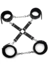 Bu Extreme Hog-tie Kit ile sevgilinizin her hareketinde tam kontrol sahibi olun. Bu kullanımı kolay hogtie kiti, deri bilek ve ayak bileği kelepçeleri, metal bir halka etrafında bulunan 4 adet kayıştan oluşur.
