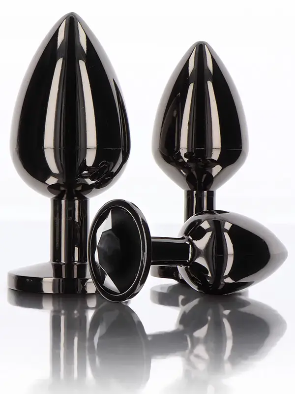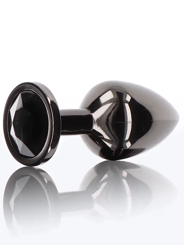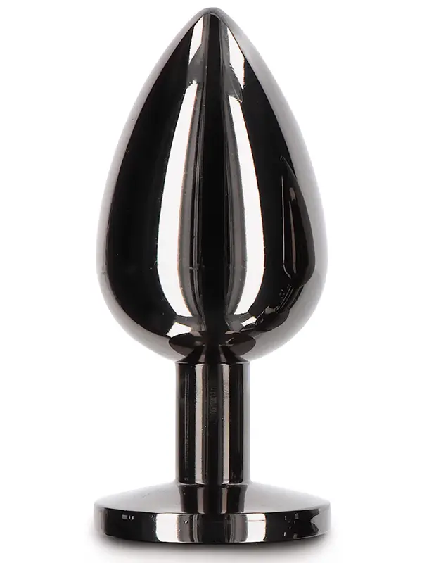 Alt kısmı mücevher siyah kristal taşla süslü plug, 9.5 cm uzunluğunda ve 4.15 cm genişliğindedir.