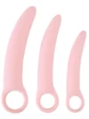 3 parçalı Silikon Dilatör Kit, konforunuzu göz önünde bulundurarak tasarlanmıştır. Ergonomik eğimli ve beş farklı boyutdaki bu dilatörler samimi deneyimleri geliştirmek ve cinsel sağlık için özenli ve detaylı bir şekilde oluşturulmuştur. Her bir parça, ftalat içermeyen, ipeksi yumuşak, pastel pembe premium silikondan üretilir. Rahat ve kademeli genişleme için farklı ebatlardadır. Her dilatör pürüzsüz ve düzgün açılı bir şekle ve kolay kullanım için bir parmak halkasına sahiptir. Dilatörlerin yerleştirilmesi, vajinal kuvveti eski haline getirir ve canlandırır ve rahatsızlığı hafifletirken de faydalı olabilir.