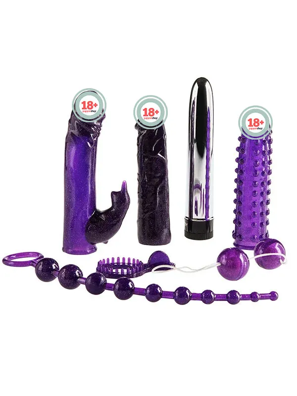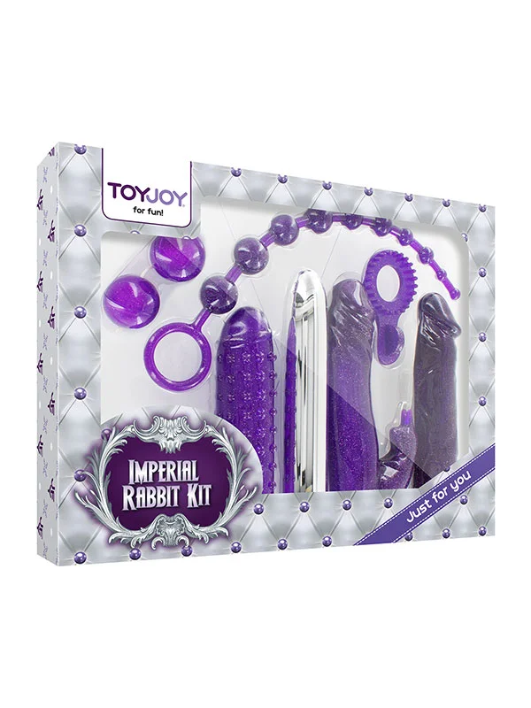 Imperial Rabbit Kit Dark, tutkulu bir geceyi garanti eden 7 heyecan verici farklı erotik oyuncak sağlar. Set mor ve gümüş temalı ve göz alıcı bir ambalajda geliyor. Bir krom vibratör, esnek bir penis kılıfı, tavşan klitoris stimülatörlü bir dildo, bir yapay penis, uyarıcı nodüllere sahip bir penis halkası, anal boncuklar ve bir 2’li aşk topu içerir.