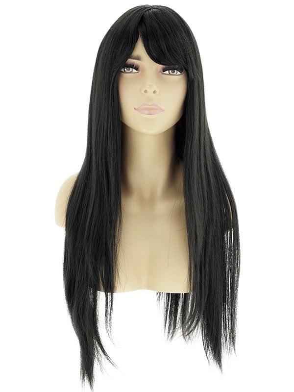 Kanekalon Uzun Düz Kahküllü Mat Siyah Peruk