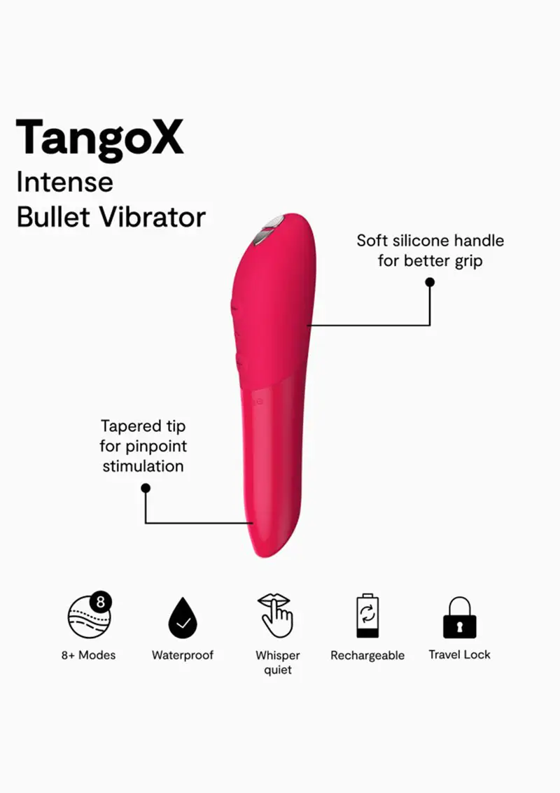 Küçük, güçlü ve taşınabilir boyutda tasarlanan We-Vibe Tango X sınıfının en güçlü mini vibratörüdür. We-Vibe Tango X, hassas dış ve iç uyarım için tasarlanmıştır. Konik uç, hassas odaklanma ile yoğun titreşimler sunarken, düz kenar tam masaj için mükemmeldir.